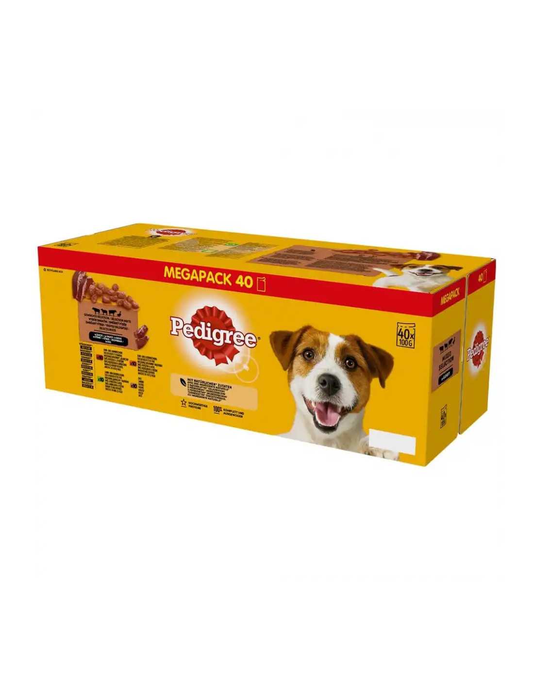 PEDIGREE Adult Mix of Flavours in Sos este un aliment complet si echilibrat, plin de carne bucati scufundate in sos aromat in patru arome: bucati bogat intr-un amestec de vita si miel, bucati bogate intr-un amestec de miel si ficat, bucati bogate intr-un amestec de carne de vita si ficat si bucati bogate in rata. Pliculetele pot fi servite separat sau ca adaos la hrana uscata pentru adulti caini.