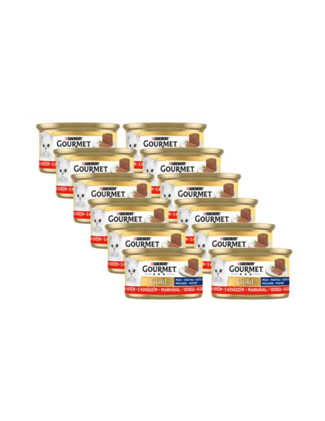 Nu vrei ca pisica ta sa se plictiseasca de mancarea ei si vrei intotdeauna sa alegi diferite tipuri de hrana pe care sa le adore. De aceea, GOURMET Gold a creat Mousse, o reteta delicioasa pentru a-i rasfata gustul sofisticat cu o experienta culinara unica. Mousse-uri delicate cu carne de vita, pui, somon si alte arome rafinate, pregatite cu atentie pentru a-i oferi pisicii tale placerea unei senzatii delicate si fine.